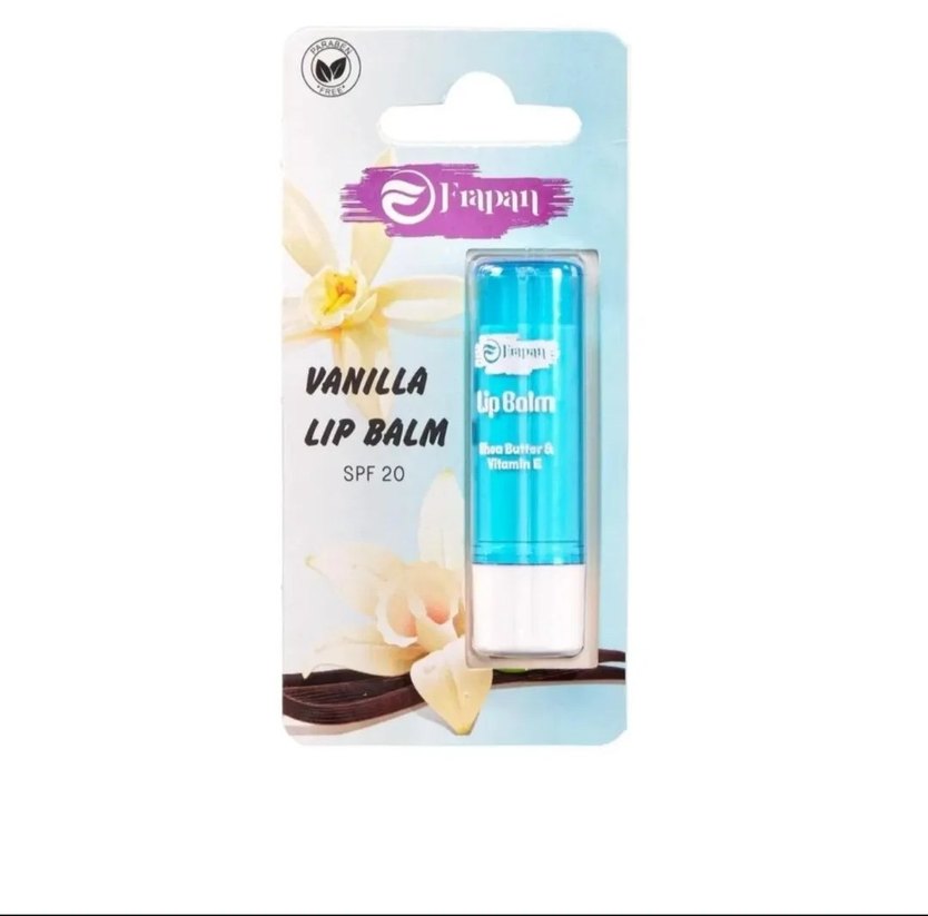 Vanilla aromalı, mavi renkte dudak balmı, SPF 20 koruma sağlar. Shea yağı ve E vitamini içerir.