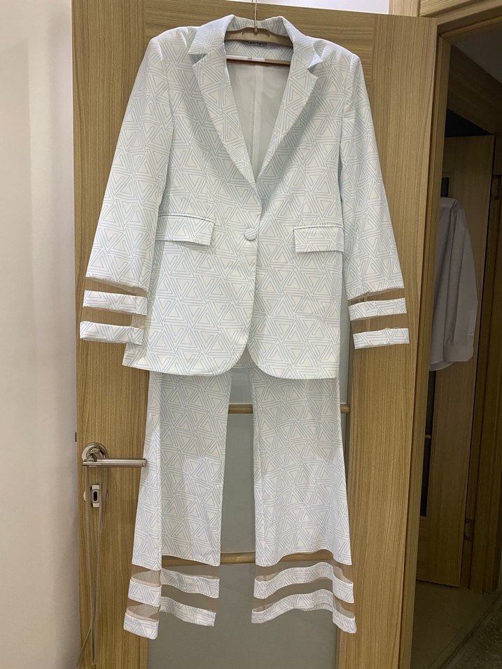 Mağzasından takım elbise ceket 40 pantolon 38 beden pantolonnun boyu 110cm vitrin de tozlanmıştı yıkandı ütülenecek Marc’a etiketindekidir