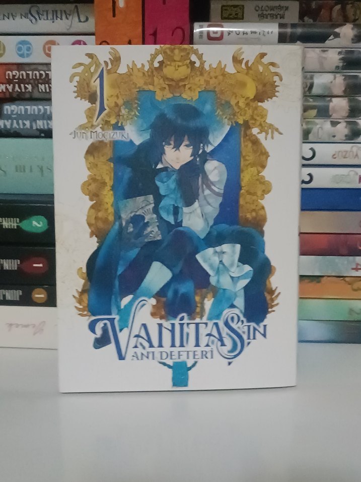 Jun Mochizuki'nin Vanitas'ın Anı Defteri adlı çizgi romanının 1. cildi. Ayrıntılı çizimler ve etkileyici hikaye içerir. Kapakta mavi kıyafetli bir karakter ve altın detaylar var.