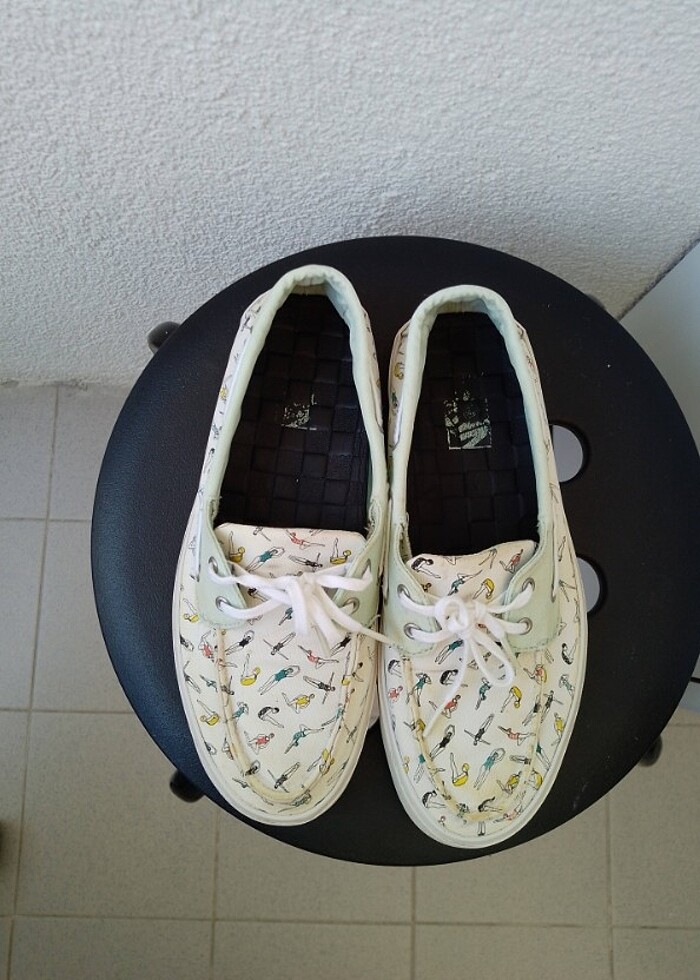 Çok sevdiğim, tabanı çok çok rahat bir malzemeden yapılmış, orjinal, 37 numara Vans. Maalesef hamilelikten sonra ayaklarım büyüdüğü için satıyorum. Desenini ve rengini çok beğenerek almıştım. Tam yaza uygun ve her şeyle giyilebilen bir ayakkabı. Kullanıma bağlı -fotograflarda göründüğü gibi- sararmalar/lekeleri var. Ayakta pek de belli olmuyor, karışık renkli olduğu için. Hiçbir yırtık, açılma, sökülme, deforme yoktur. Fotoğraflarda göründüğü gibidir.