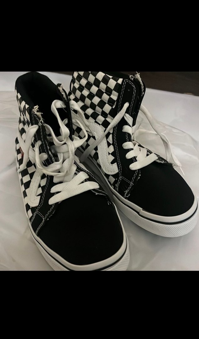 Vans Deri Fermuarlı Kareli Dolgu Topuklu Spor Ayakkabı - Görsel 1
