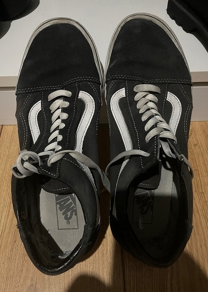 Orijinal VANS siyah erkek ayakkabı içten topuk kısmında hafif deformasyon vardır resimlerde gösterilmeye çalışılmıştır harici kusursuzdur aklınıza takılan ne varsa sorarak alın iadesi yoktur