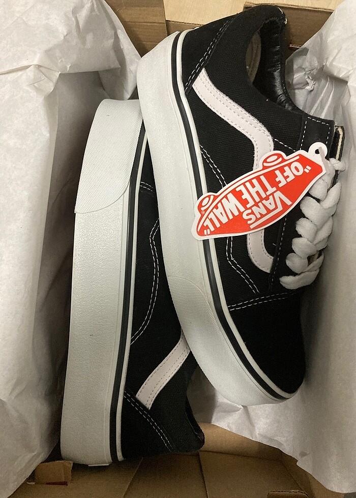 Ürün sıfırdır kendi kutusundadır Vans ın platform serisi 4 cm taban boyu vardır QR Kodlu kutulu okutulduğunda Vans ın resmi sitesine yönleniyor orijinallik konusunda şüpheniz olmasın. Tam kalıptır 36-40 arası numaraları mevcuttur.