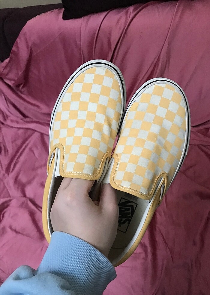 Çok az giyildi, herhangi bir deformasyonu mevcut değildir. 37 numara. Vans’ın slip-on kalıbına sahip serilerinden, güneş sarısı renginde. Orijinaldir. Güncel fiyatı görseldeki gibidir. Stokta yok şuanlık Vans’in sayfasında.