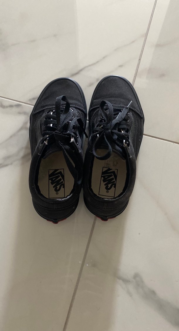 Siyah Vans kadın spor ayakkabısı, düz kauçuk taban ve velcro bantlı. Rock punk tarzı ve günlük athleisure için uygun.orjinaldir