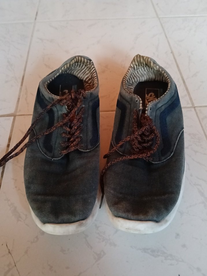 Vans marka açık lacivert renkli bağcıklı 44.5 numara yanlarında yırtılma veya içinde sökük yoktur sağ yan tabanda yüzülme vardır