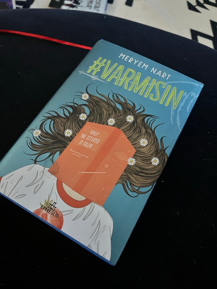 Meryem Nart'ın #Varmısın adlı romanı, umut ve değişim temalarını işler. Kapakta çiçekli saçları olan bir kız resmi var. Ciltli