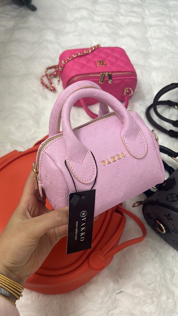 Varro markalı, baskılı dokulu, fermuarlı pastel pembe deri kadın el çantası, trend sokak stili için uygun.