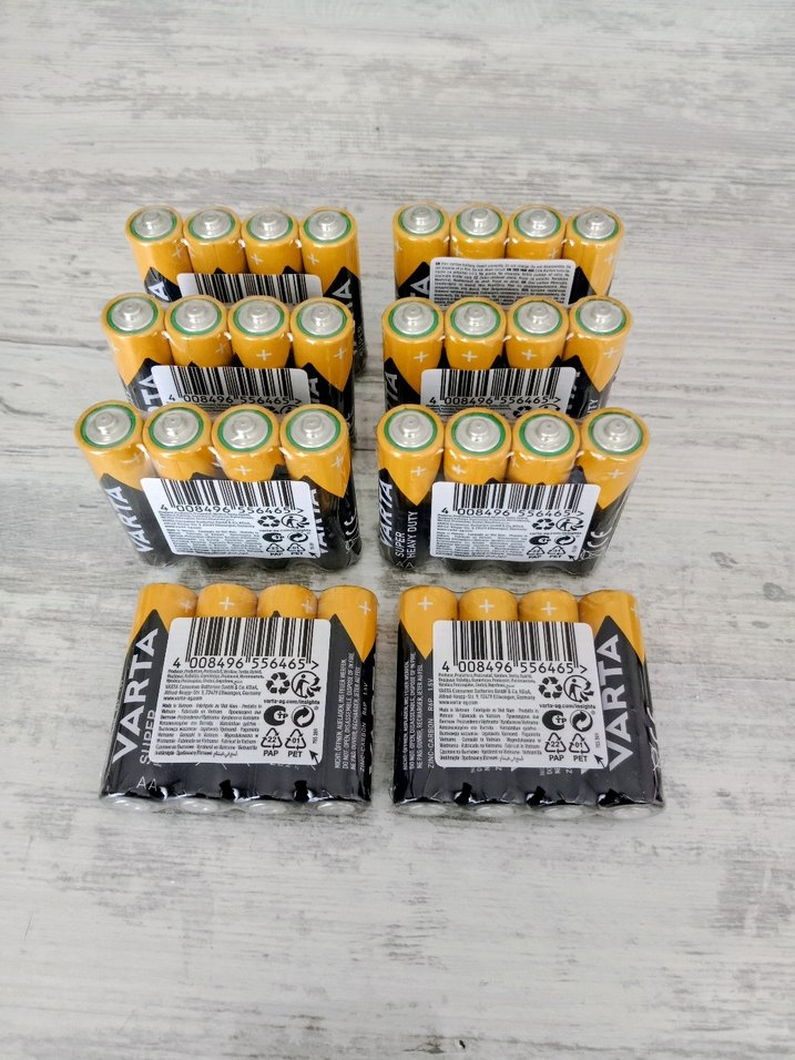 Sarı ve gri tasarımlı 20 adet Varta AA kalem pil, çeşitli elektronik cihazlar için uygundur.