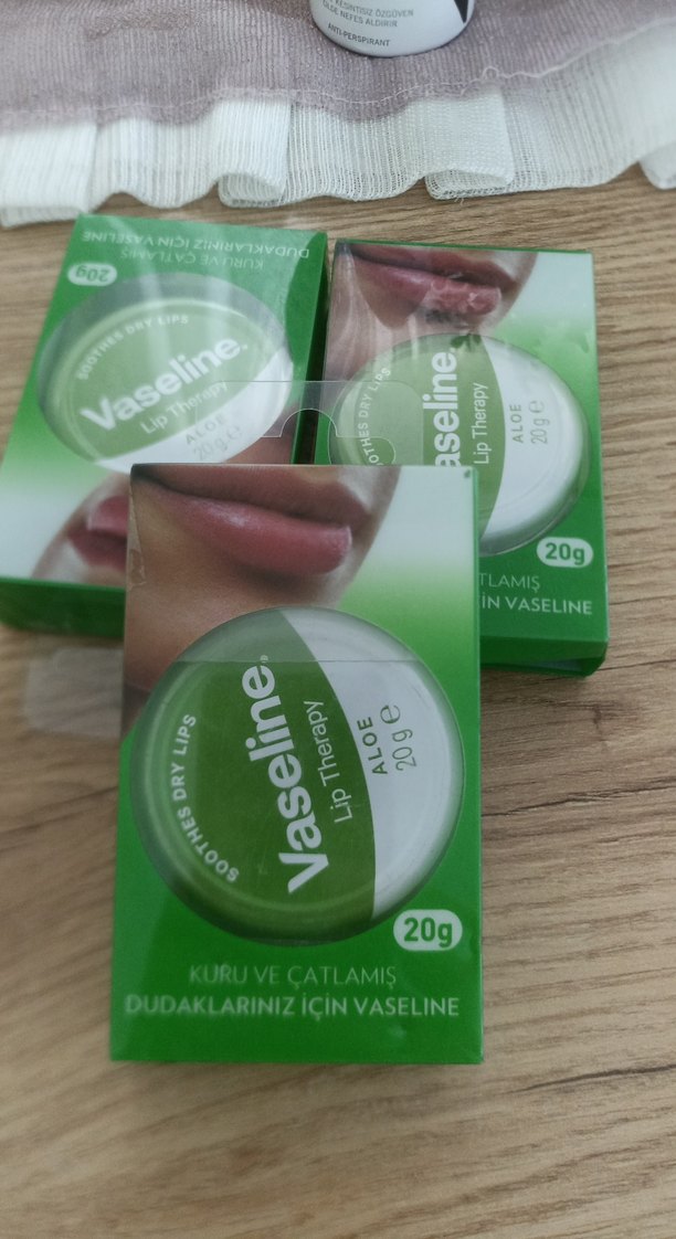 20g'lık kutuda, kuru ve çatlamış dudaklar için aloe içerikli Vaseline Lip Therapy. Açık yeşil kutusu aloe vurgusu yapar.