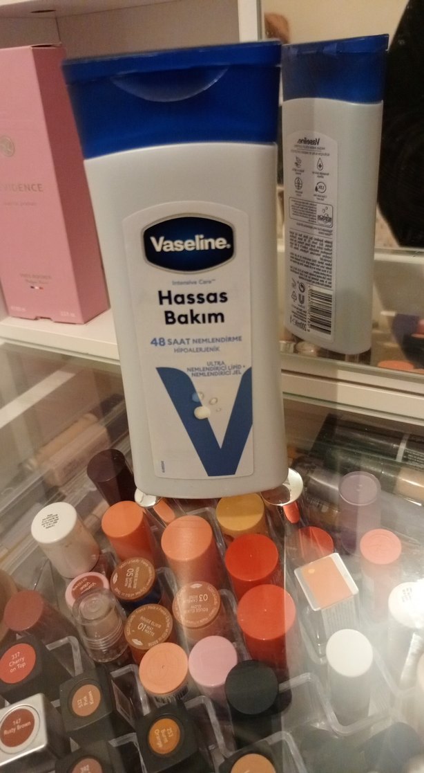 Vaseline hassas bakım vücut losyonu, 48 saat nemlendirme sağlar ve hipoalerjenik formülü ile cildi ultra nemlendirir.