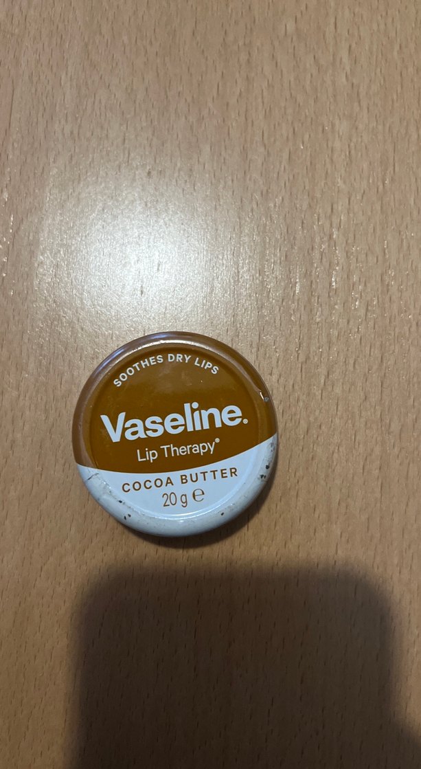 Vaseline Lip Therapy, kakao yağı içeren, kuru dudakları yatıştırır ve nemlendirir. 20g'lık taşınabilir kutuda, parlak bej renklidir.