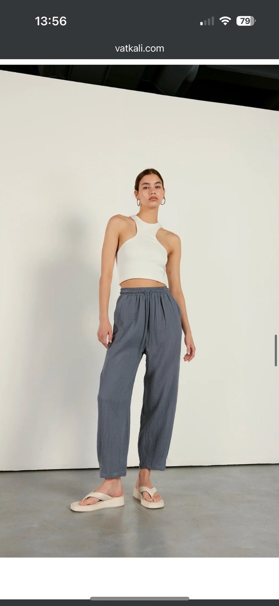 Füme, bol kesim ve midi boy pantolon, günlük kullanıma uygun, desensiz ve rahat bir şıklık sunar. Bir sorunu yok az kullanılmıştır. Marka temsili vatkalı markadır.