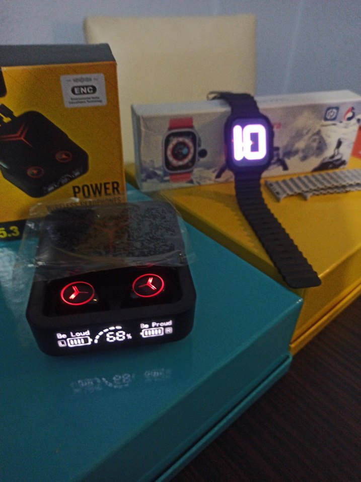 Sıfır Kaçmazzzz.Kargo da bizden ⏲️ T800 Ultra Akıllı Saat ve Powerbanklı Bluetooth Kulaklık ikisi bir arada fotolar yakında gelecek.. Şimdiden siparişiniz hazırlayınız..☢️Full ve Tam Donanımlı olarak Telefon kullanmayı UNUTACAKSINIZ✍ Siyah kulaklık renkli LED göstergeler ve 'POWER' ile pil durumu ekranına sahiptir. Saat ekranında büyük, parlak 10 rakamı bulunur.