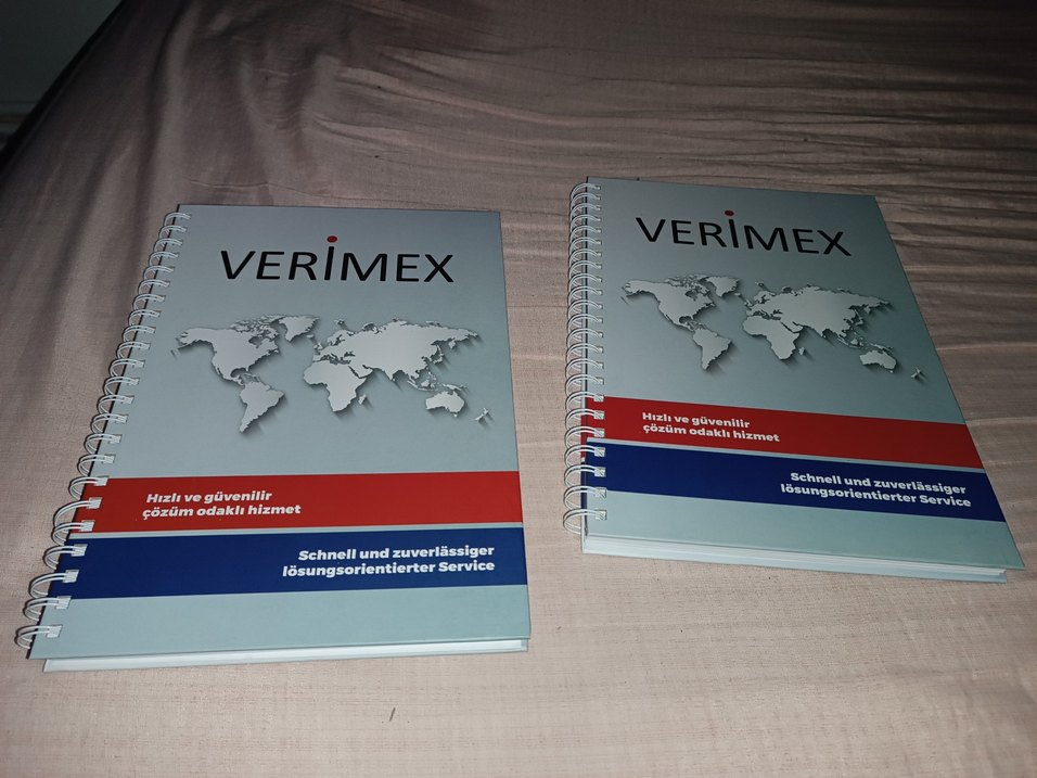 VERIMEX seti, hızlı ve güvenilir çözüm odaklı hizmeti anlatan iki kitaptan oluşur. Biri spiralli, diğeri sert kapaklıdır.
