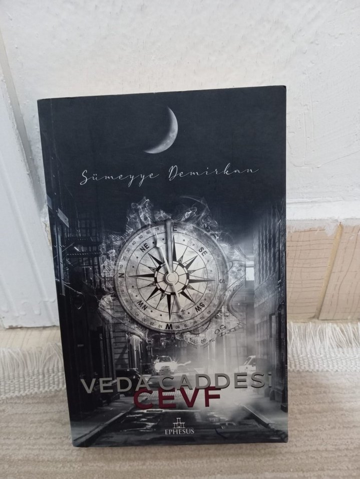 Sümeyye Demirkan'ın Veda Caddesi Gece adlı romanı, kapağında sembolik bir pusula ile karanlık ve gizemli şehir hikayelerini anlatıyor.