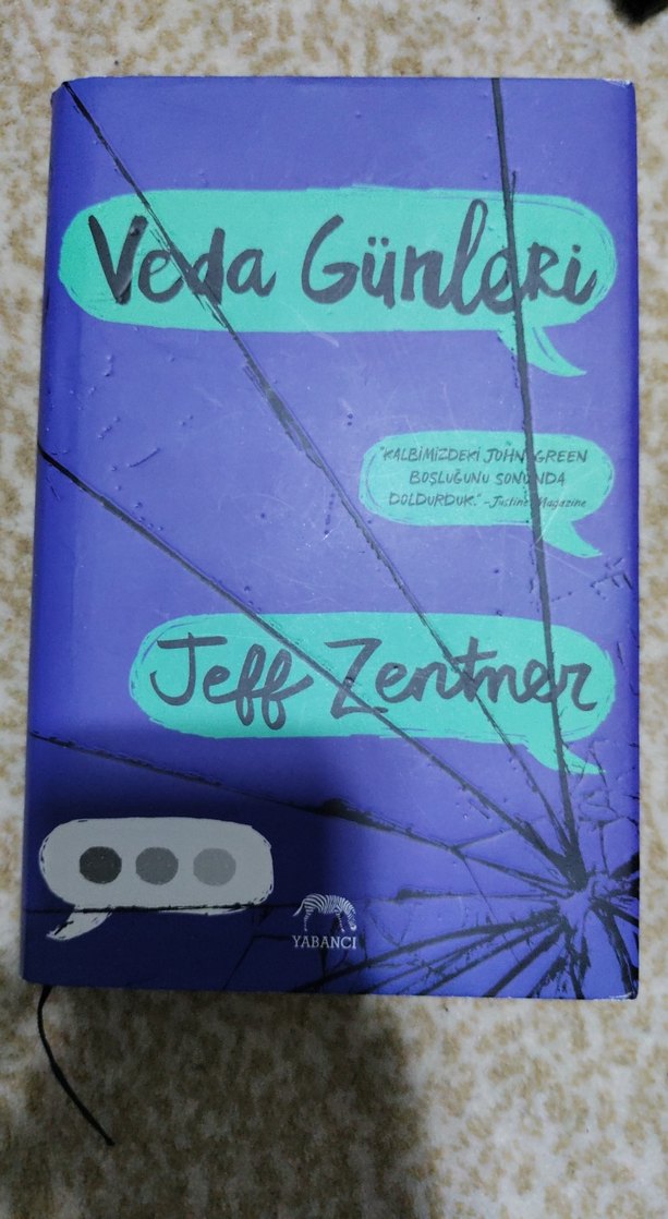 Jeff Zentner'in "Veda Günleri" adlı romanı, derin duygusal temaları işliyor. Kapakta çatlak ve sohbet balonları yer alıyor.
