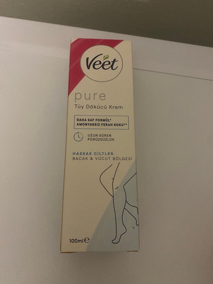 Veet Pure tüy dökücü krem hassas ciltler için uygundur. Amonyaksız, ferah kokulu ve uzun süre pürüzsüzlük sağlar. Bacak ve vücut bölgeleri için idealdir.