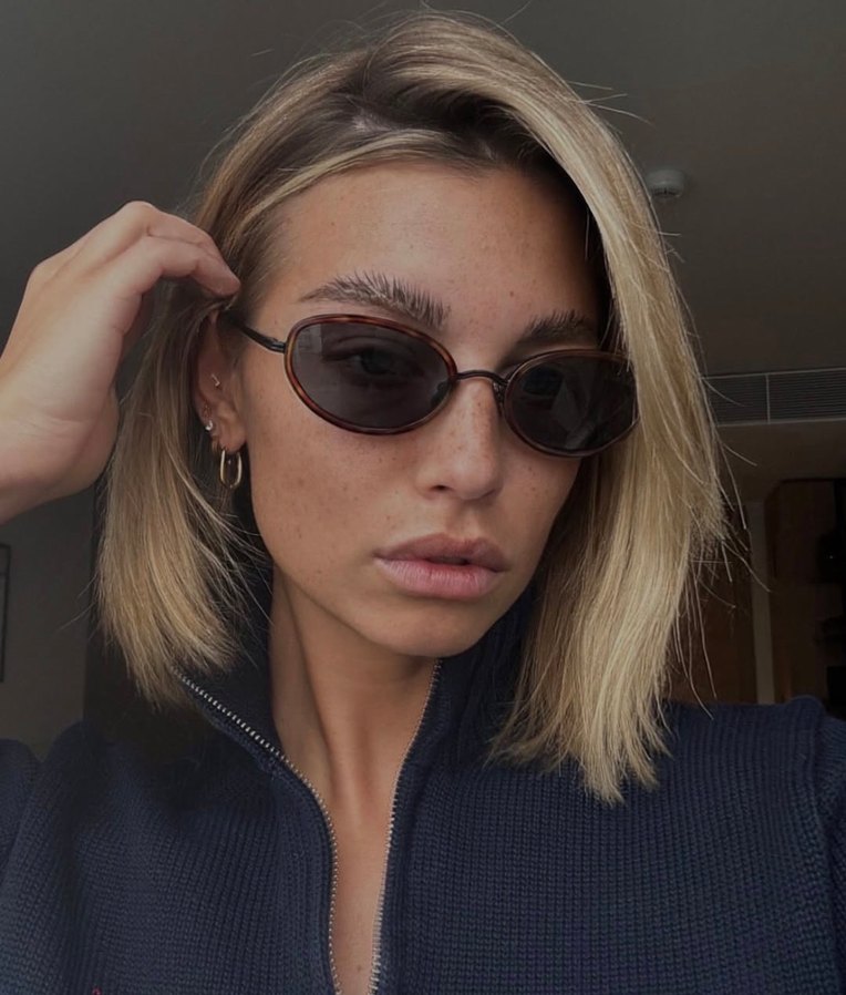 Bej-gri minimalist kadın güneş gözlüğü, trend günlük tarz ve zahmetsiz şıklık sunar. Karşı kültür görünümü için ideal.