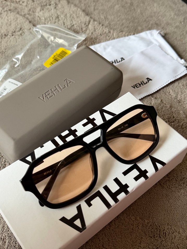 Bej renkli, koyu camlı vintage tarzı kadın gözlüğü Velcro detaylı. VEHLA marka kutu ve kılıf ile birlikte.