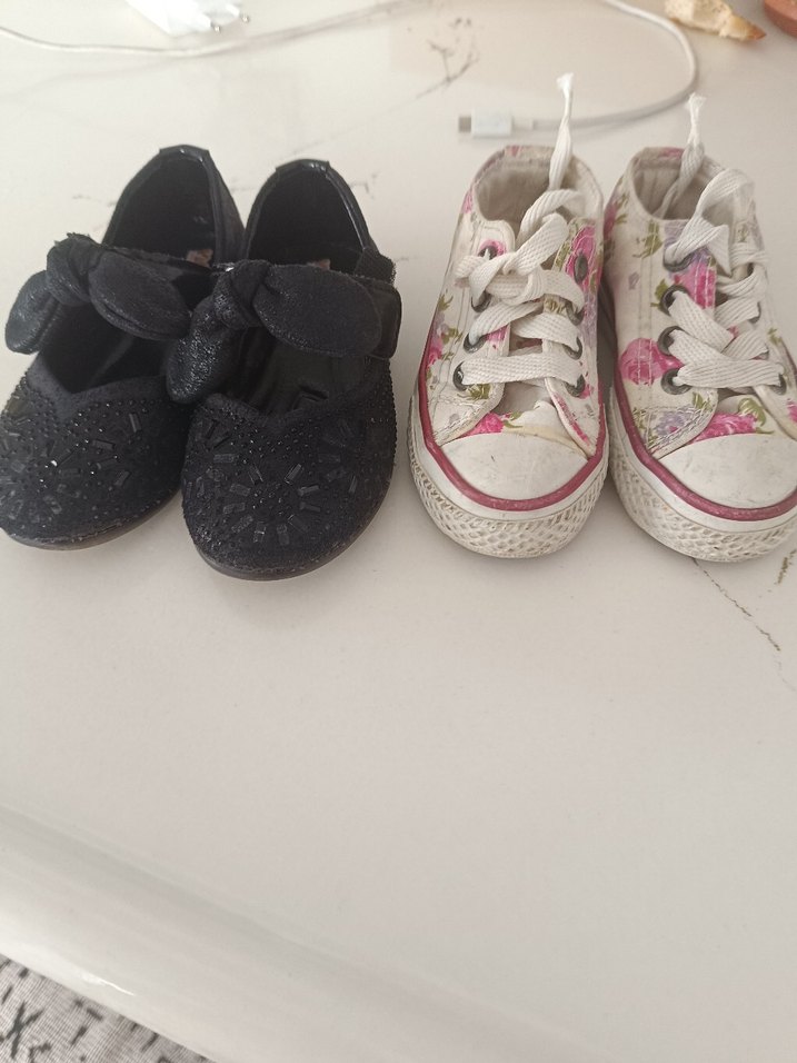 Kız çocukları için beyaz renkli, bağcıklı ve cırt cırtlı iki farklı spor ayakkabı. Kauçuk tabanlı, streetwear tarzında rahat ayakkabılar.