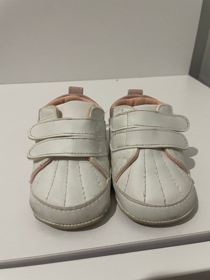 Velcro bantlı beyaz kız bebek ayakkabısı