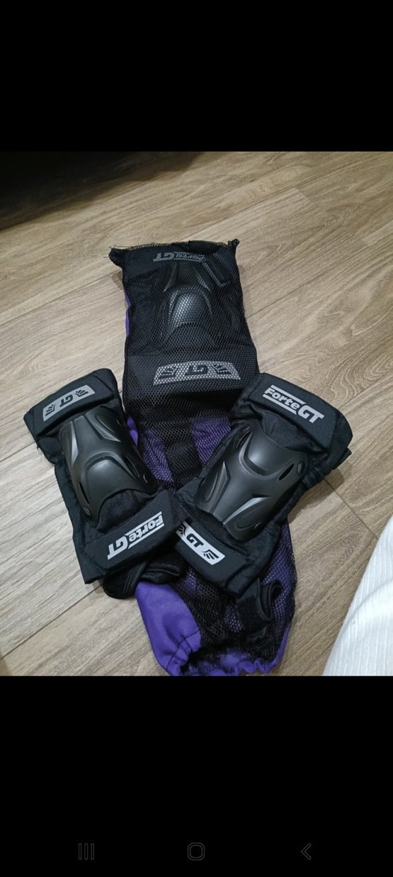 Mor renkte, Velcro bantlı biker dizlikler. Baskılı yumuşak kumaştan yapılmış, ForteGT markalı koruma sağlar. ️
