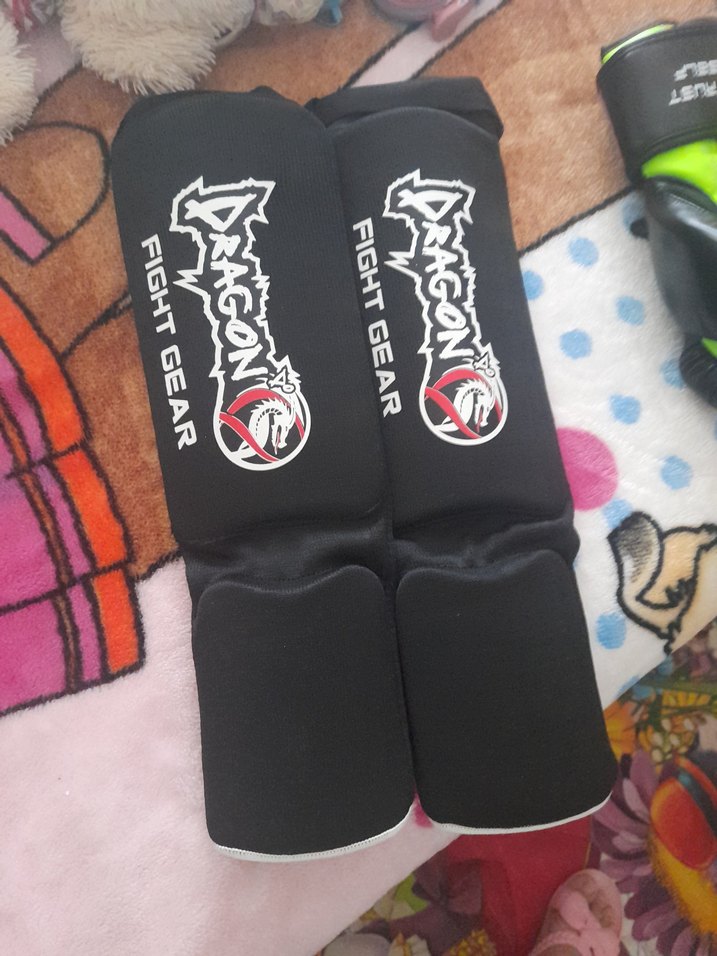 Yumuşak kürk dokulu siyah motosiklet diz koruyucu, renkli baskılı ve Velcro kapanışlı. Üzerinde 'AGON FIGHT GEAR' yazısı bulunur. ️