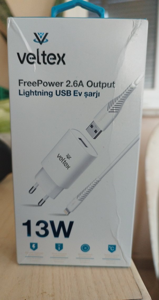 Veltex 13W beyaz ev şarjı, Lightning USB kablo ve 2.6A çıkış ile hızlı şarj sağlar ⚡iphone sarj