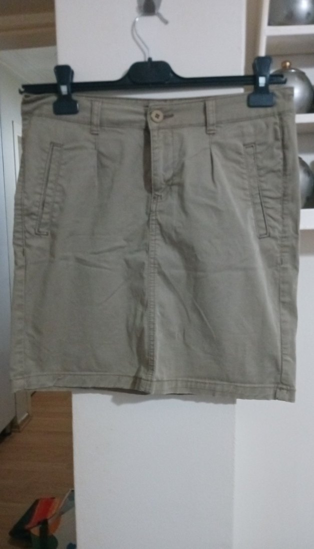 Bej renkli mini etek, rahat kesimi ve keten kumaşıyla günlük sokak stili için uygundur. Desensiz ve gündelik kullanıma uygun.