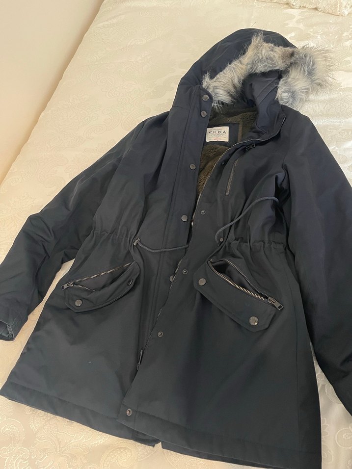 VENA Gri Kürklü Kapüşonlu Kadın Mont s-m beden