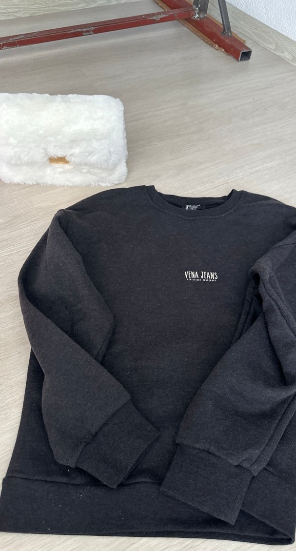 Vena Jeans marka, yumuşak kumaşlı gri, bisiklet yaka ve bol kesim uzun kollu sweatshirt. Göğüste küçük baskı logo bulunur, günlük kullanım için uygundur.