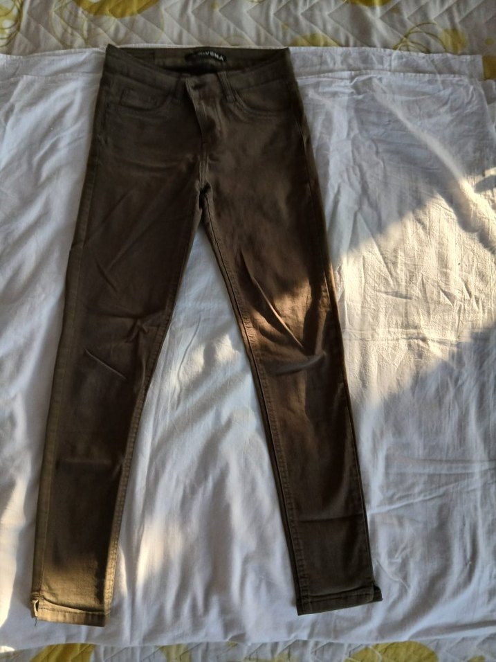 Haki renk dar paça jean, midi boy ve desensiz. Günlük kullanım için rahat ve şık, sokak modasına uygun.24 bedendir ve yeni gibidir