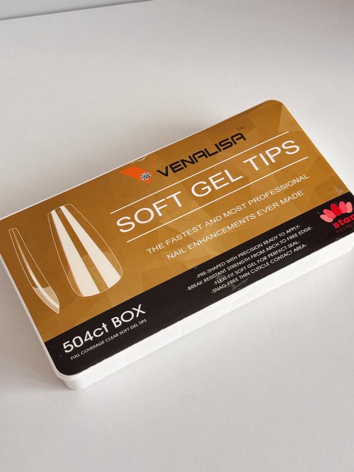 Venalisa yumuşak jel tırnak uçları, bej renkte, 504 adetlik kutuda profesyonel tırnak bakımı için uygun.