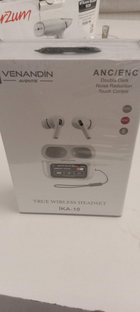Venandin Aventis IKA-10 kablosuz kulaklık, gürültü azaltma, ANC/ENC teknolojisi ve dokunmatik kontrol sunar. Gri ve beyaz renklerde, kompakt şarj kutusuyla birlikte gelir.