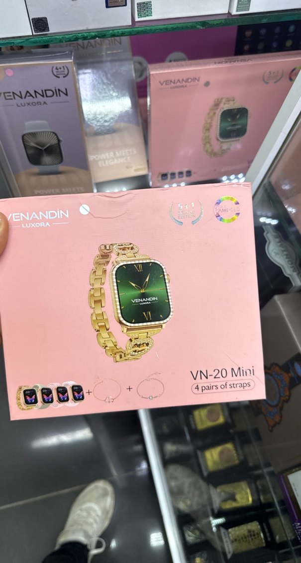 Venandin Luxora VN-20 Mini altın renkli akıllı saat, 4 çift kayış ile birlikte gelir. Zarif tasarım ve akıllı özellikleri bir arada sunar. ⌚
