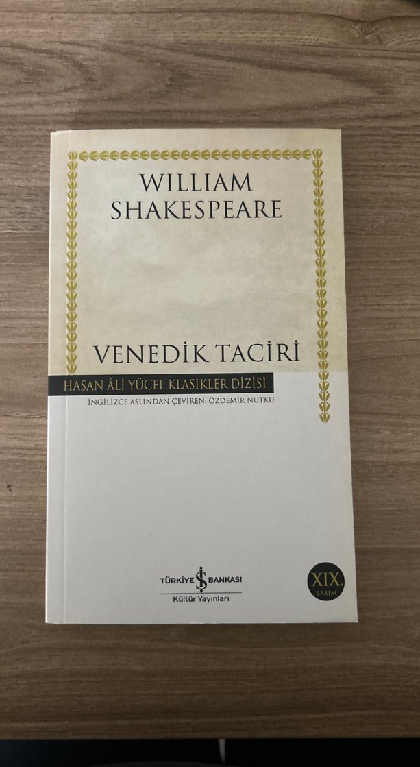 William Shakespeare'in "Venedik Taciri" adlı eseri, Hasan Ali Yücel Klasikler Dizisi'nden, Özdemir Nutku çevirisiyle.