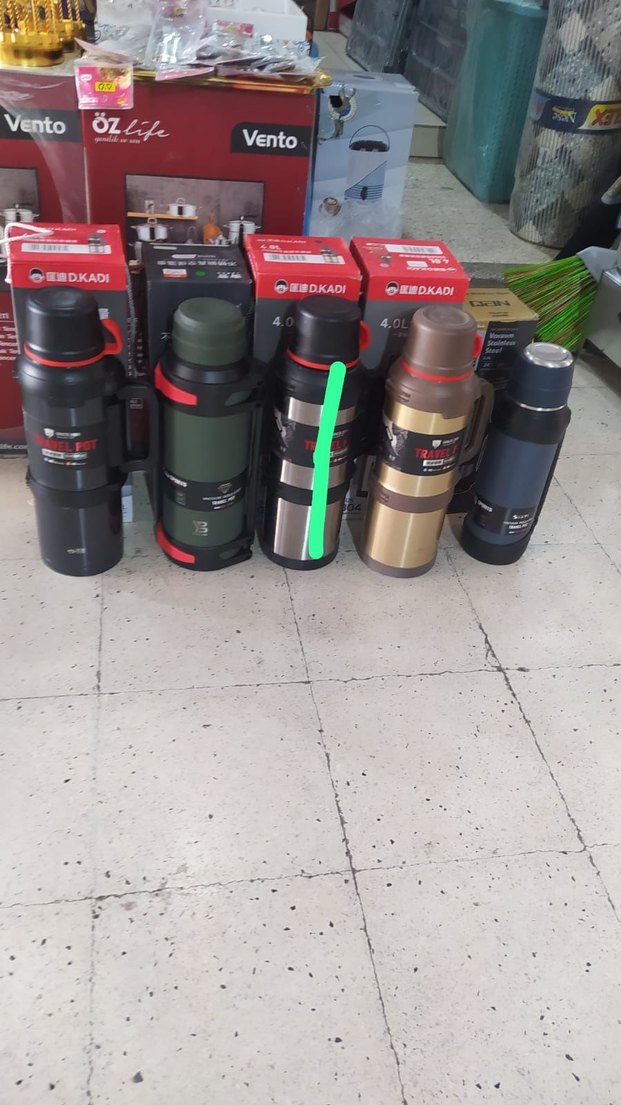 Vento marka 4 litrelik haki renk çocuk termos şişesi, içecekleri sıcak tutar. Sağlam yapıda, güvenli kapak ve kolay tutuş sağlar. ☕