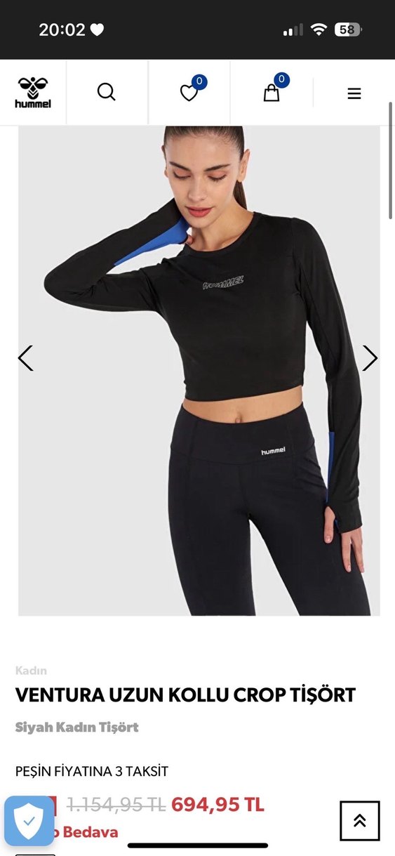 Ventura uzun kollu crop tişört, parmak delikli kollara ve bisiklet yaka sahiptir. Siyah, ince sentetik kumaştan yapılmıştır ve baskılı logo içerir. Spor için şık ve rahat bir seçenek.
