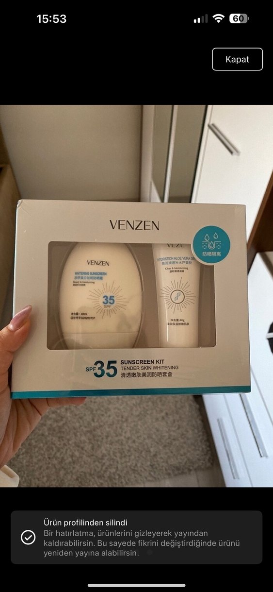Venzen SPF 35 güneş koruyucu seti, aloe vera ile nemlendirme ve cilt beyazlatma özellikleri sunar. elimde fazla vardır. ihtiyaç fazlasıdır hiç terletmez yada yapış yapış his bırakmaz.