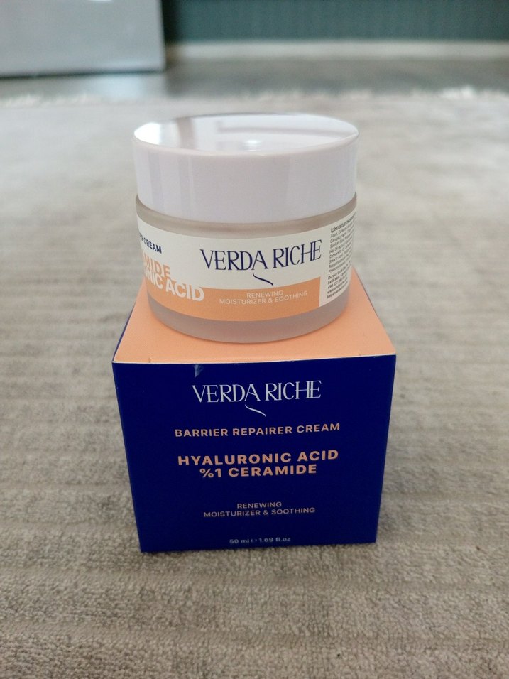 Verda Riche Barrier Repairer Cream, %1 ceramide ve hyaluronik asit içerir. Cildi yeniler, nemlendirir ve yatıştırır. Ürün 3 kere kullanıldı.