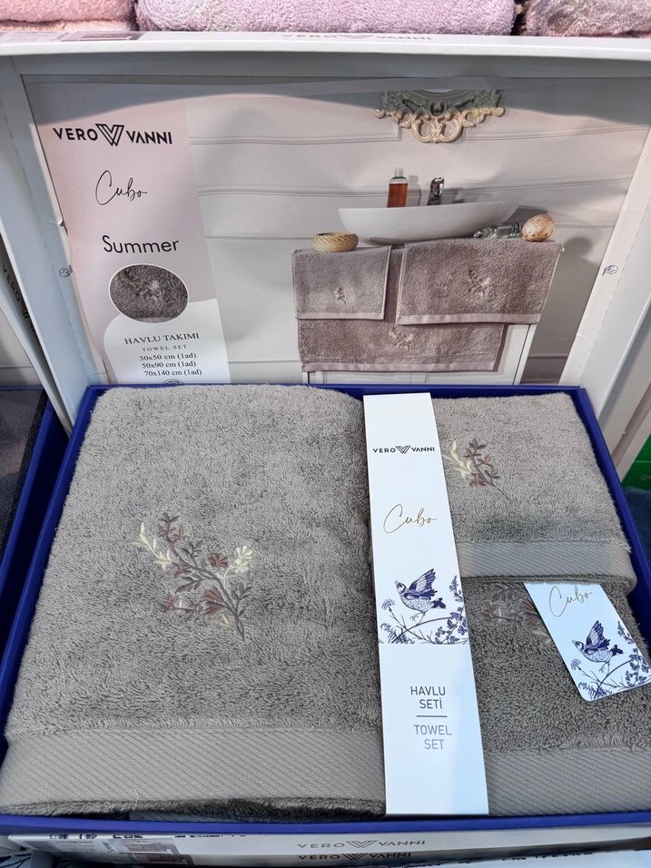 Banyo keyfinizi lüks bir deneyime dönüştürün! Vero Vanni Cubo Havlu Seti, %100 microcotton dokusu sayesinde ekstra yumuşaklık, yüksek su emicilik ve uzun ömürlü kullanım sunar. Şık nakışlı tasarımı ile banyonuza zarif bir dokunuş kazandırır. Set İçeriği: El Havlusu: 30 x 50 cm (1 Adet) Yüz Havlusu: 50 x 90 cm (1 Adet) Banyo Havlusu: 70 x 140 cm (1 Adet) Microcotton teknolojisiyle üretilen bu havlular, klasik pamuktan daha yumuşak ve emici bir yapıya sahiptir. Cilt dostu kumaşı sayesinde hassas ciltlerde bile güvenle kullanılabilir.