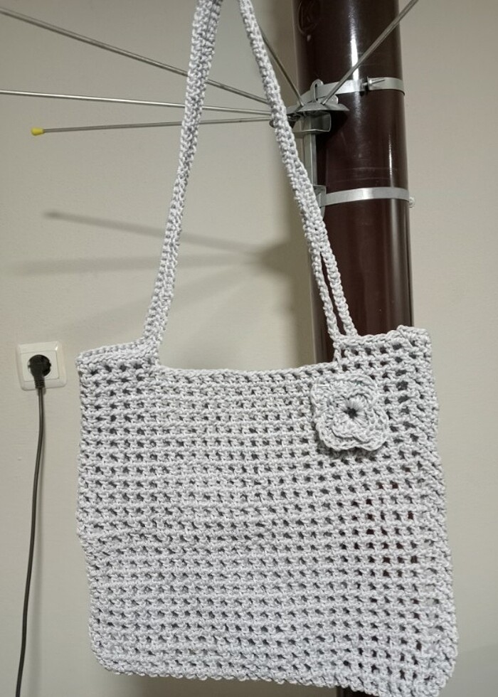 Ürün el emegidir makrome ipiyle örüldü. Boy. 25 cm. En. 26. Cm. Giri gümüş. Rengi