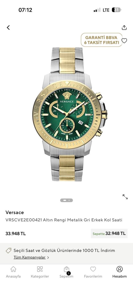 Versace Altın Renk Metalik Gri Erkek Kol Saati
