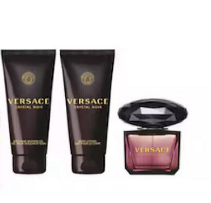 Versace Crystal Noir kadın parfüm seti, şişe ve iki uyumlu vücut bakım tüpü içerir, 90 ml hiç kullanılmadı iade kabul etmiyorum fake ürünle değişim yapıyorlarmıs