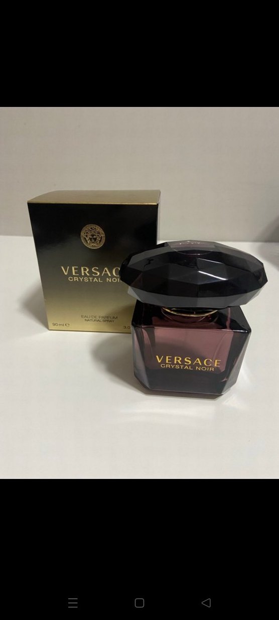 Versace Crystal Noir kadın parfümü, 90 ml şişede, şık koyu tasarıma sahip. Lüks bir koku deneyimi sunar.