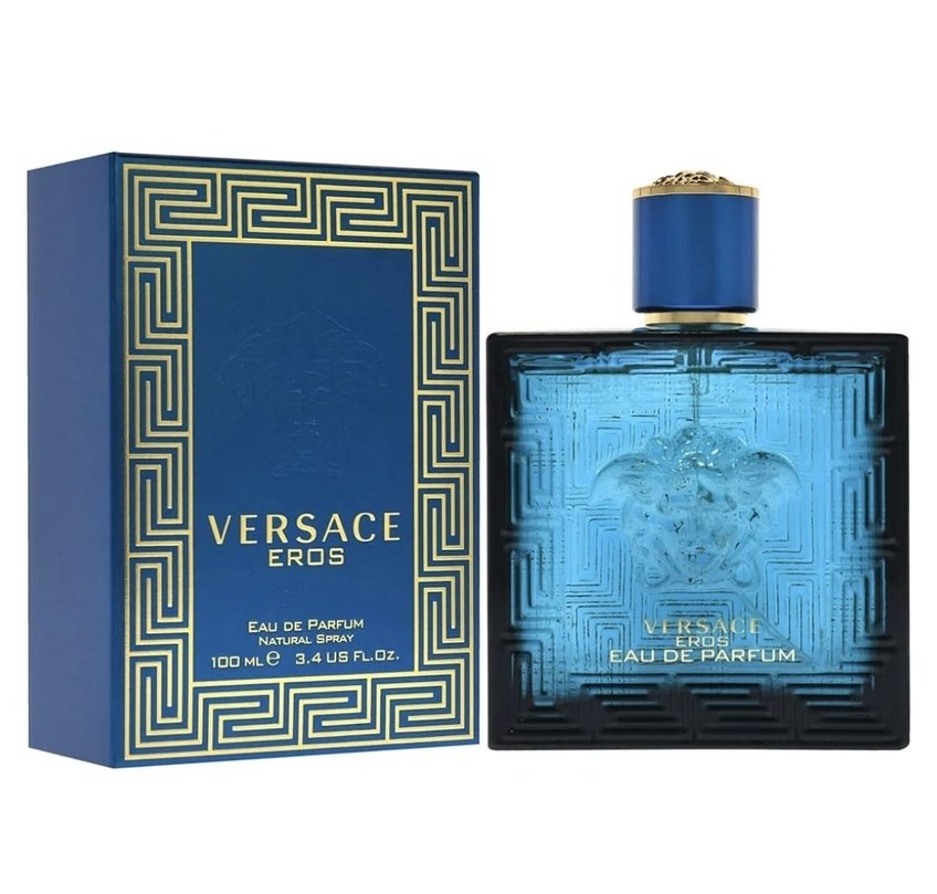 Versace Eros erkek parfümü, koyu mavi şişesi ve altın detaylarıyla modern klasik tarz sunar. 100 ml Eau de Parfum sprey olarak gelir.
