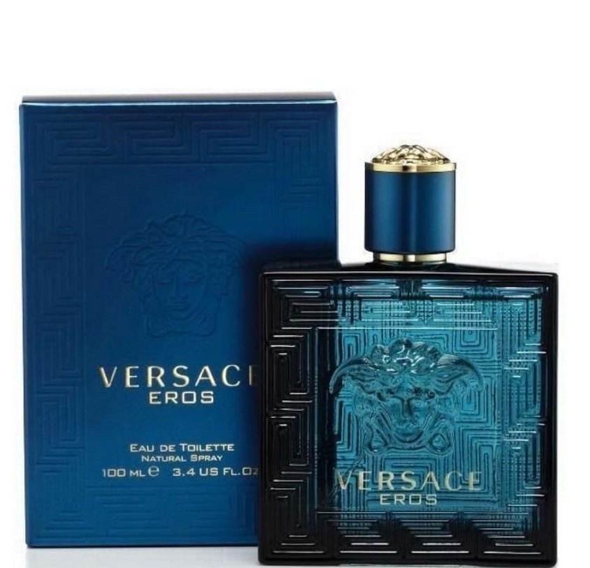 Versace Eros erkek parfümü, parlak mavi şişesi ve klasik tasarımıyla dikkat çeker. 100 ml eau de toilette sprey olarak sunulur.