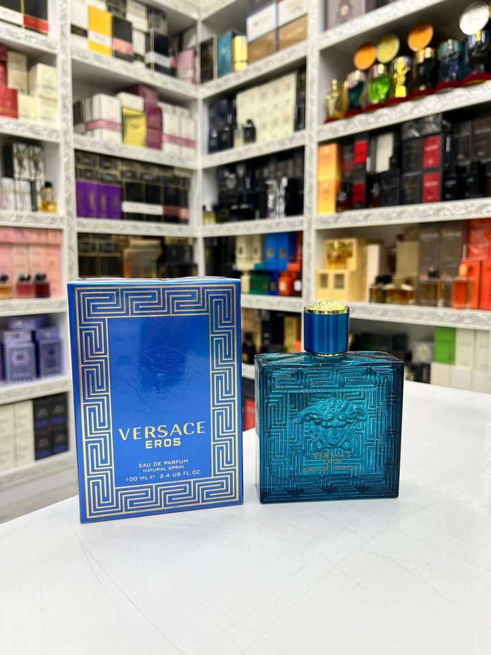 Versace Eros erkek parfümü, mavi şişede modern klasik tarzda. Canlı ve renkli kokusu, zamansız bir şıklık sunar. Yunan anahtar desenli detaylı kutuda.