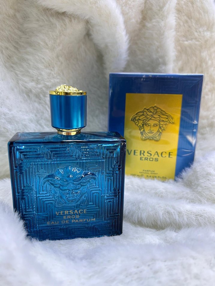 Canlı mavi şişede, modern klasik tarzda Versace Eros erkek parfümü, zamansız bir koku sunar.
